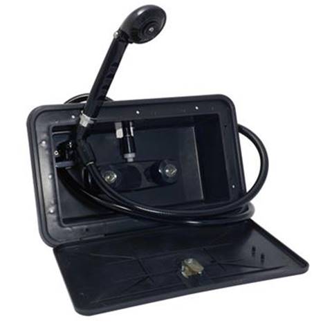 - Hand held shower head with fixed position swivel bracket and trickle shut-off